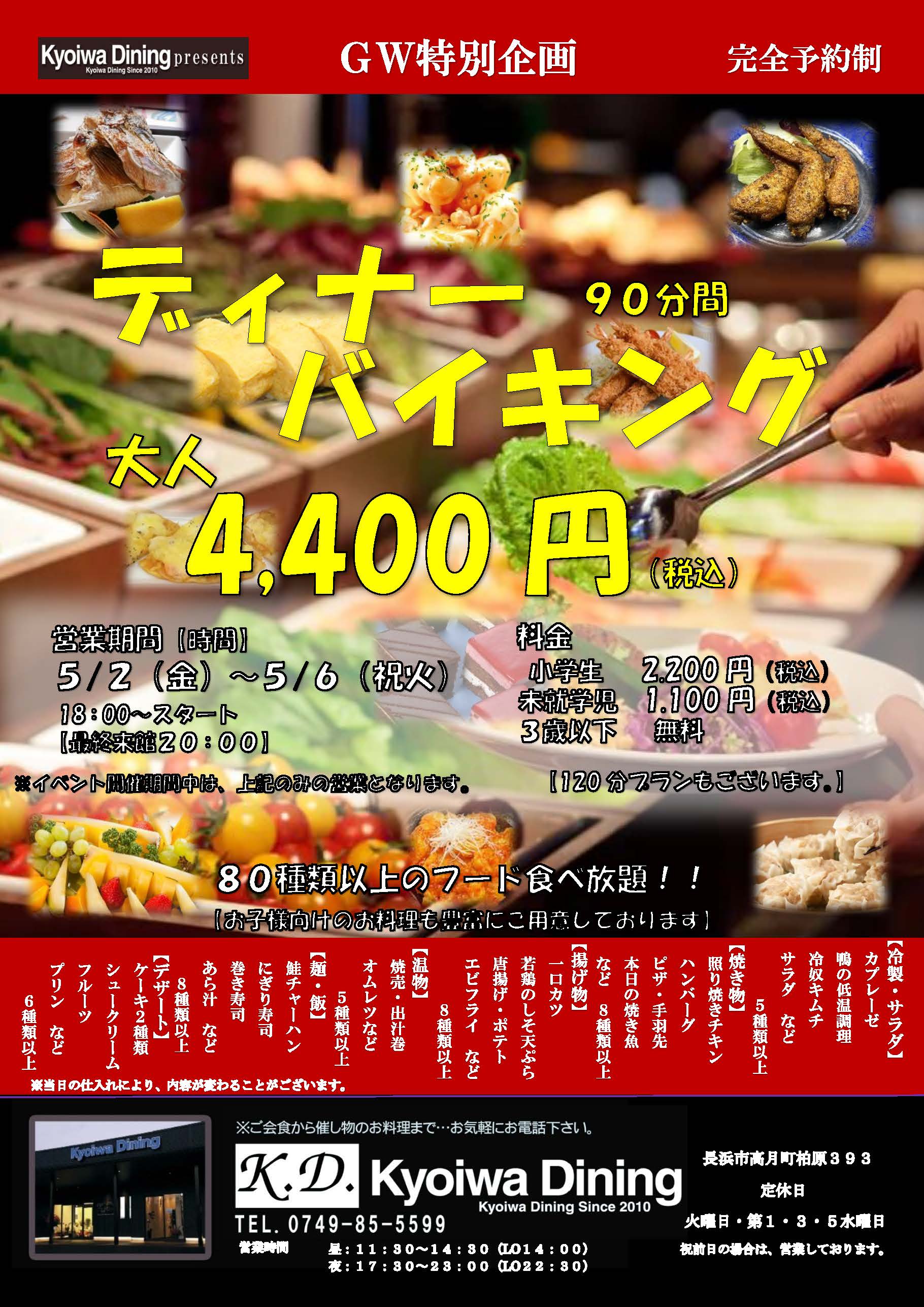 ゴールデンウィーク特別イベント・ディナーバイキング!